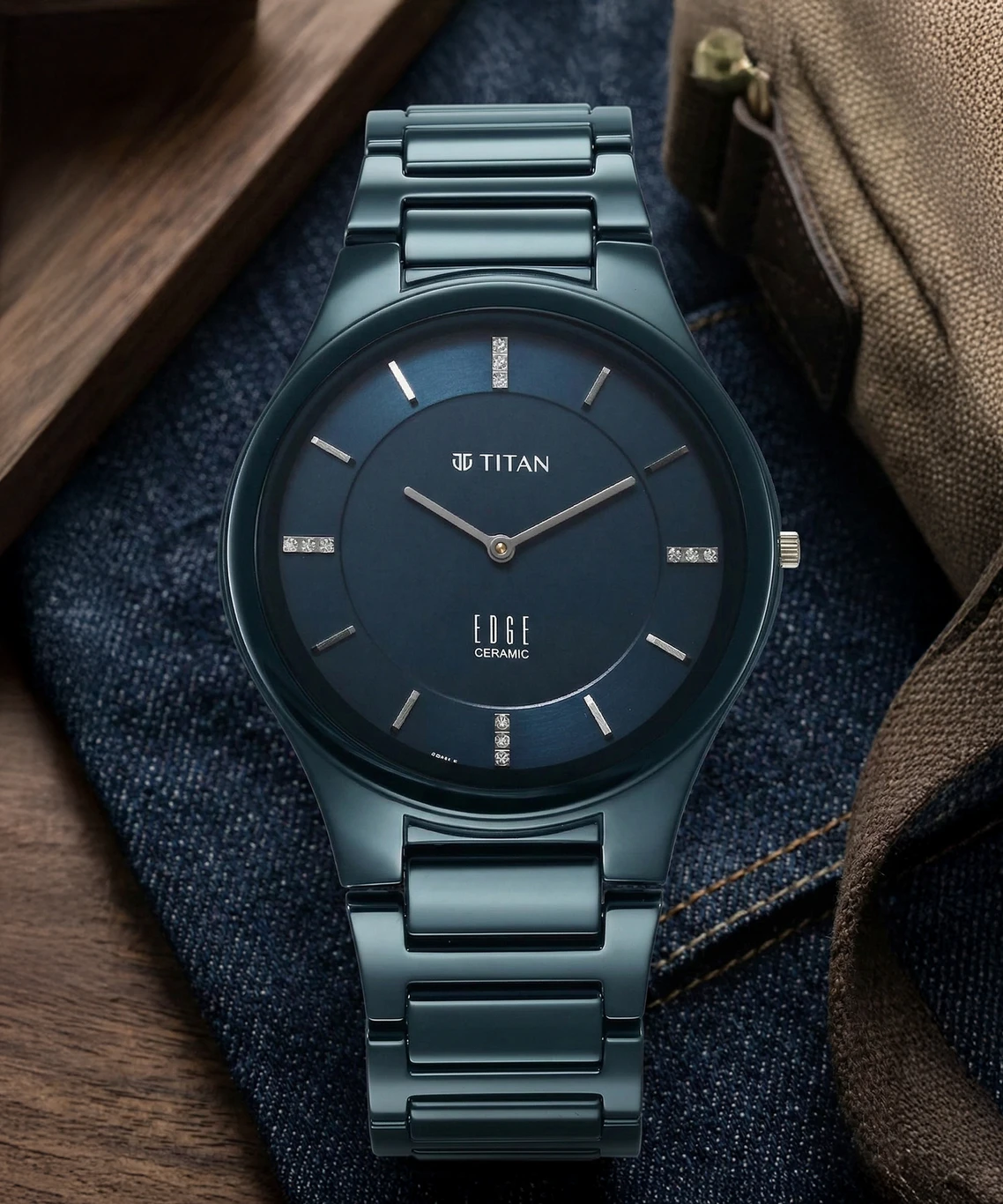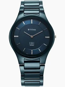 Titan Edge Ceramic Quartz in Atlantic Blue Dial with Diamonds Watch for Men.
